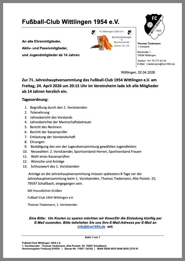 Liebe  Mitglieder des FC Wittlingen,